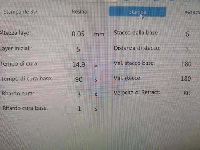 io stampo corone provvisorie con bego varseo crown temp.Uso come software chitubox e sto provando in maniera empirica a settare i parametri e capire meglio come posizionare il pezzo sul piattello per avere un dettaglio migliore .Non ho ancora raggiunto un risultato ottimale e vorrei confrontarmi con qualcuno che ha piu esperienza di me o che ha le stesse mie problematiche cosi' da ottimizzare e condividere i risultati anche per evitare spreco di questa resina che costa circa 520 euro al chilo.