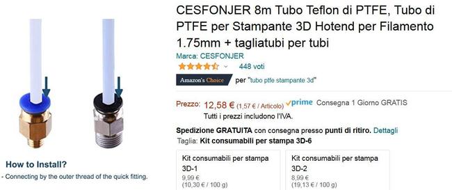 ti confermo che anche nel nuovo ricambio che ho acquisato la "silver column" (Credo si chiami così) ha la scanalatura che permette di infilarci la chiave da 8mm per tenerla ferma ed avvitarla sul blocco dell'estrusore, per non sapere leggere ne scrivere prendo questo ptfe, che ne dite ? https://www.amazon.it/dp/B07SPXY5B7/ref=sspa_dk_detail_4?psc=1&pd_rd_i=B07SPXY5B7&pd_rd_w=nHORi&pf_rd_p=96761fa3-4234-49dd-8d6b-59aa6f96396a&pd_rd_wg=4PUXB&pf_rd_r=8HMVDCN8EG04R7KJNHDS&pd_rd_r=a5ee3bf6-6dd2-413a-9f4a-35cc88750fff&spLa=ZW5jcnlwdGVkUXVhbGlmaWVyPUEyR0UzVDU4N0JIM0lBJmVuY3J5cHRlZElkPUEwMzg0NTkwM0VFVzFENjlNSERSQyZlbmNyeXB0ZWRBZElkPUEwMzI2NDM1MU1USDVOSFdNOFRWWSZ3aWRnZXROYW1lPXNwX2RldGFpbF90aGVtYXRpYyZhY3Rpb249Y2xpY2tSZWRpcmVjdCZkb05vdExvZ0NsaWNrPXRydWU= A proposito di "Silver Column" ma questi "pneumatici" non sarebbero meglio al posto di quello che originale che non li ha? Aggiungo altro -