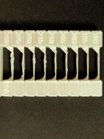 Qui invece la temptower si parte dal basso con 215° e si arriva agli ultimi 2 da 180°, la prima che ho fatto con i gradi normali della temptower è finita male quindi li ho abbassati, all'incirca stampo a 195°