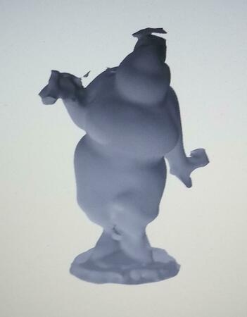 Tenendo poi conto che col Ciclop, le figure tinte di blu venivano scansionate meglio, ho provato anche con lo XYZ a fare lo stesso, ma con questo tipo di scanner 3D, i risultati sono invece quasi gli stessi, a parte qualche lievissimo miglioramento. Probabilmente il motivo è dovuto al fatto che la profondità qua viene misurata in modo diverso. Allego comunque tre scansioni da figure tinte col blu. Un'ultima cosa, relativamente al commento sullo XYZ scanner: io come si vede, l'ho provato su figure di piccole dimensioni (le ho messe sulla base rotante del Ciclop, che facevo girare manualmente..): non l'ho dunque provato su misure di grosse dimensioni. Dico questo perché tengo a precisare il fatto che ogni figura di quelle Disney che vedete qua sopra, è alta al max un 15 cm e larga al max una decina, e quando le scansionavo, dovevo farlo una, max due per volta, perché il PC (o meglio il software del PC) inizia dopo un pò ad andare in palla per surriscaldamento dell'hardware. Consideriamo inoltre il fatto che io il PC portatile l'ho potenziato nella maniera come descritto sopra: se non lo avessi fatto, quando la RAM era ancora di 8GB e l'HD di 256 GB, il PC andava già in palla come avviavo il software. Ovviamente chi possiede un portatile più potente del mio già in partenza è avvantaggiato (il mio ha processore Processore Intel Core i5-1135G7 Quad-core 2,40 GHz) comunque i limiti dello scanner sono quelli che si deducono dalla qualità delle scansioni ottenute.
