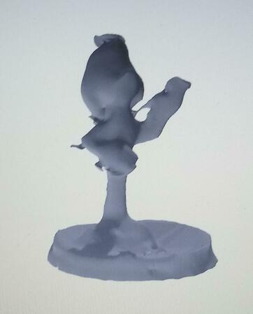 Grazie per i consigli. Comunque, come avevo anticipato, vado qui ora a mostrare i risultati ottenuti con lo scanner 3d XYZ. Come l'altra volta, cioè per lo scanner 3d Ciclop, come modelli ho preso dei personaggi Walt Disney in plastica che avevo in casa; nelle immagini abbinerò l'originale con la foto della relativa scansione 3D scattata sul monitor del PC portatile. Come si potrà notare, le immagini sono sicuramente più integre che quelle ottenute col Ciclop, anche se certi dettagli lo XYZ non riesce a catturarli: direi comunque che nel complesso, data l'importanza in ogni caso dell'integrità di un'immagine, direi che le scansioni ottenute con lo XYZ sono senz'altro migliori, anche se pur sempre approssimative a livello di dettagli. Aggiungo una cosa importante: lo XYZ (a differenza del Ciclop), fabbisogna di un PC con una certa potenza; ecco qui i requisiti di cui fabbisogna: - sistema operativo almeno Windows 10; - RAM di almeno 4 GB; - processore IntelCore i5 almeno; - porte USB di tipo almeno 3.0; - scheda video con almeno 2 GB di VRAM. Io infatti, ne ho approfittato per cambiare portatile (il mio aveva 4 GB di RAM, ma porte USB 2.0, processore I3). Attenzione, perché non sono molti comunque i PC con 2 GB di VRAM (io ho preso un Acer Aspire 3, con 8 GB di RAM, potenziata fino a 20 GB, e con Hard Disk da 256 GB potenziato a 1 TB). Il portatile volendo si può ulteriormente potenziare con un HD disk allo stato solido (io ne ho preso uno di 1 TB), che si può montare internamente al PC o volendo esternamente tipo Hard Disk removibile: più che altro serve per farci girare sopra il software 3d che comanda lo scanner 3d, perché in questo modo il software gira più velocemente (microprocessore permettendo, perché quello nel mio caso è rimasto sempre lo stesso: in ogni caso si ha un miglioramento delle prestazioni, più che altro in fatto di nitidezza della scansione ottenuta). Ora passo a mostrare le immagini delle scansioni. Ovviamente non reputo lo XYZ un gran scanner, però nella sua fascia di prezzo economica, è comunque da preferire al Ciclop. Ecco le immagini: