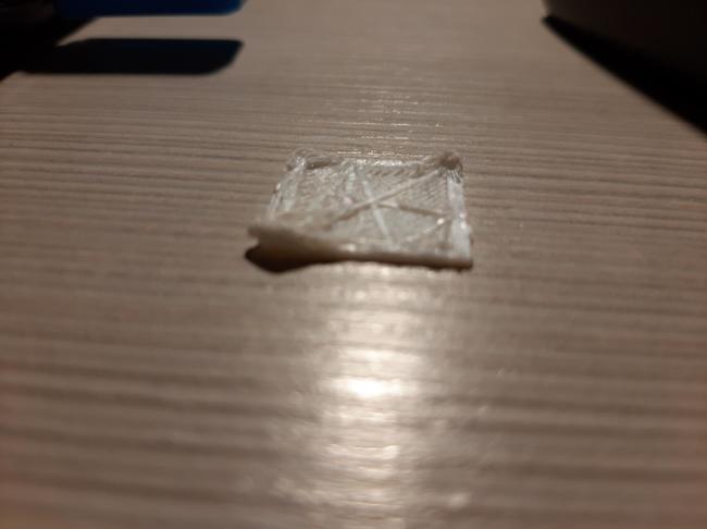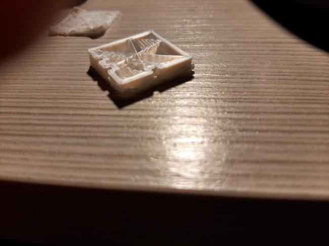 6. Ok, ho provato con queste impostazioni e questo è il risultato. Direi decisamente meglio, anche se durante la stampa ho notato che nei primi layer si accumula del materiale negli angoli, in particolare uno, ed inoltre, come si può vedere dalle foto, c'è ancora una sovraestrusione nei primi layer.
