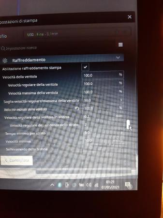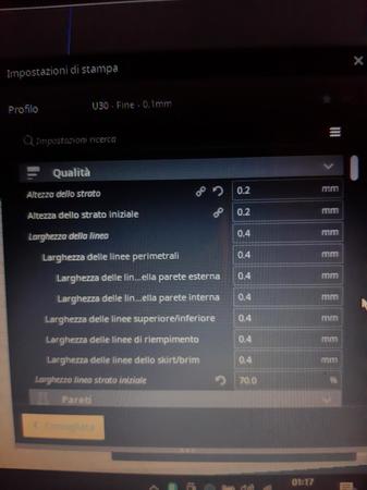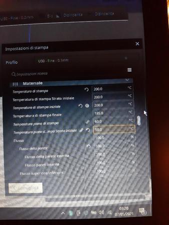 5. Li avevo già settati una volta, insieme a tutti gli altri parametri, solo che aggiornando cura si è resettato il gcode iniziale e quindi li ho persi; mo mi ci metto e li risetto.