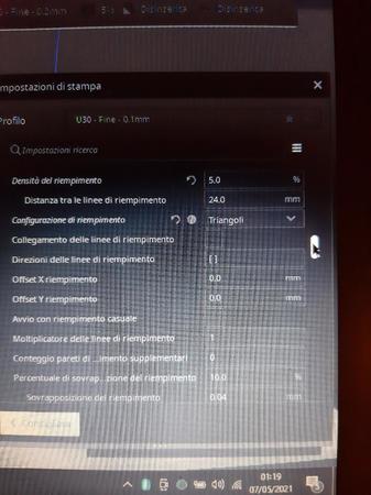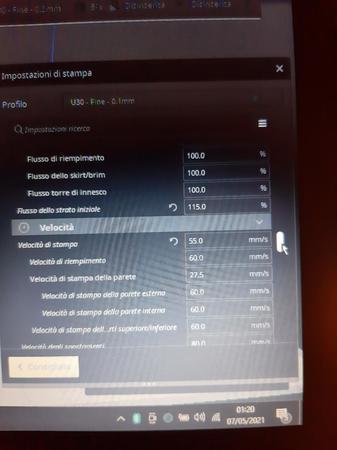 7. Grazie per la risposta, comunque ho un'alfawise u30 e stampo pla. Ora provo le impostazioni da te consigliate e poi ti faccio sapere. Grazie ancora