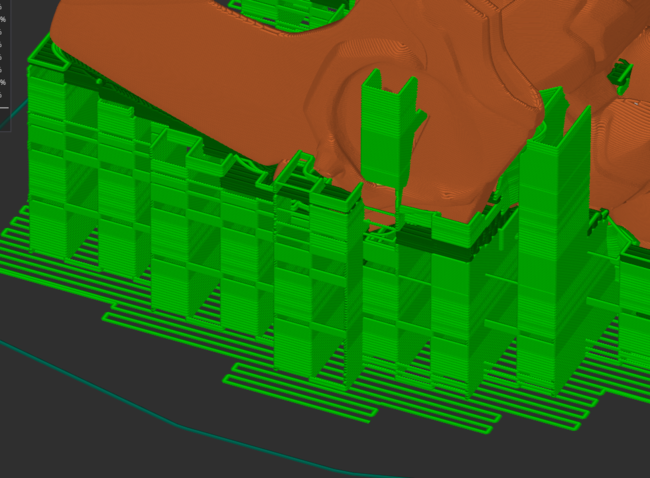 Leggendo in rete ho capito che potrebbe essere un problema di ventilazione (già avuto problemi in passato con la ventola di serie di Artillery poi sostituita con una non originale e poi di nuovo con una originale Artillery). Ho provato a montare anche la ventola non originale in modo da capire se il problema fosse il raffreddamento ma il risultato è stato il medesimo. Ho ancora provato ad abbassare le temperature di stampa passando dai 205° soliti che uso per stampare il PLA (SUNLU PLA+) a 195° ma non ho avuto riscontri positivi. Attualmente il massimo angolo di sbalzo che la stampante sembra riuscire a gestire è di circa 30-35 gradi, ben distante dai 55-60 che potrei raggiungere con un layer da 1.2mm.