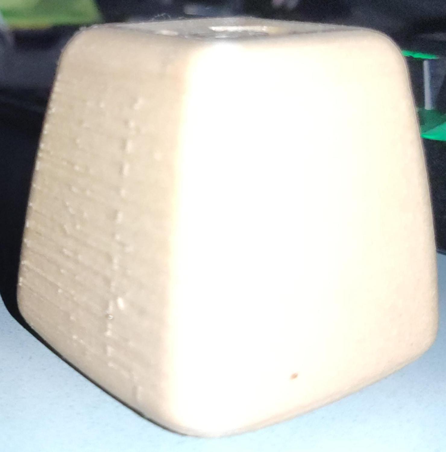 i solchi che si vedono sulla superficie nera, mi stai dicendo che dipendono dall'assenza di supporti essendo l'angolo maggiore di 50°? Non centra nulla l'over-extrusion? e come mai in quello trasparente non ci sono solchi, pur avendo stampato senza supporti né ventola? -