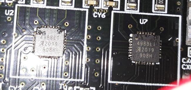 Li ho controllati molto attentamente ed esternamente sono perfetti. Quelle sbavature un po' più scure sui terminali saldati sono un'effetto ottico: nella realtà sono puliti e ben separati tra loro. Se invece ti riferivi al packaging che ha delle chiazze nere sopra è normale. Il dissipatore ha lasciato un po' della sua schifosa colla sui driver e prima di rimetterlo devo pulirli. Dalla foto che c'è sopra si vedono i due driver da cui si scollava il dissipatore, infatti i driver sono solo leggermente sporchi di colla, mentre i due driver a cui il dissipatore aderiva bene sono completamente impregnati. -