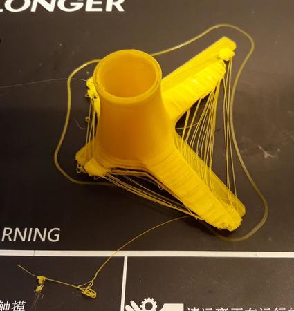 Ho attaccato meglio il dissipatore sui driver dei motori, ma le temperature rimangono comunque stabili sui valori che vi ho scritto sopra. Ho creato un piccolo ventilatore provvisorio che ho messo sotto la stampante, in corrispondenza dell'elettronica, ma è servito a poco e a niente (riconosco che non faceva molta aria). Rispondendo ad Eddy72, sulla copertura della scheda madre c'è il posto per installare una ventola, ma la ventola non è inclusa con la stampante: sarà il mio prossimo acquisto. Dopo questi due piccoli interventi ho riprovato la stessa stampa di ieri, lo stesso gcode, sulla stessa SD. Stranamente la stampa di oggi è stata peggiore di quella di ieri, pur con una macchina che, anche se di poco, dovrebbe essere migliore. Layer shifting non mi sembra di vederne, ma in compenso è tutta sfilacciata e i layer sembra che non abbiano aderito bene. Lo sfilacciamento non mi sembra stringing, perché quelli sono i veri e propri layer che non sono al loro posto (soprattutto nella base del pezzo). Il tronco poi non è liscio, ma ha delle rughe, come se alcuni layer fossero più a destra e alcuni più a sinistra. Appurato che c'è un problema di raffreddamento dell'elettronica, che immagino che fosse responsabile del layer shifting, non capisco da cosa dipendono adesso i problemi di qualità della stampa. Qualche idea? -