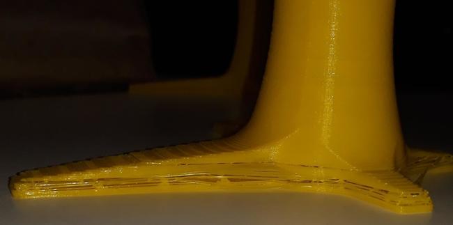 Ho seguito i vostri consigli e sembra funzionare in maniera migliore, ma ancora siamo lontani dagli standard delle stampe che avevo fatto precedentemente. Ho invertito i motori di asse X e asse Y, ho tirato ancora di più la cinghia dell'asse Y, e ho staccato il coperchio della scheda madre (pensando che potesse migliorare la ventilazione). Ho anche dato una controllata alla scheda madre e ho notato che il dissipatore dei driver non è perfettamente attaccato ai componenti (è un lungo dissipatore che li include tutti e 4). I driver dell'estrusore e dell'asse Z sono coperti dal dissipatore, mentre su quelli dell'asse X e dell'asse Y il dissipatore è un po' staccato. Durante la stampa ho preso le temperature di alcuni componenti: Temperatura motore asse X: 32 °C Temperatura motore asse Y: 33 °C Temperatura motore asse Z: 32 °C Temperatura motore asse E: 35 °C Temperatura dissipatore driver dal lato in cui è attaccato: 72 °C Temperatura dissipatore driver dal lato in cui è staccato: 69 °C Temperatura dissipatore slot scheda SD: 30 °C I motori hanno una temperatura accettabile, quella del dissipatore lo è un po' di meno. A questo punto tendo a pensare che il problema sia la temperatura dei driver, che essendo troppo elevata li manda in protezione. Di sicuro dovrò riattaccare il dissipatore con un po' di pasta termica e installerò una ventola. Mi sembra l'unica soluzione per diminuire la temperatura!?! Arrivando alla qualità della stampa: mi sembra che in alcuni punti ci sia una sotto estrusione. Mentre staccavo il pezzo la base si è separata dal resto proprio nel punto in cui sembrava che mancasse un layer. Ci sono altri segni di under extrusion anche nella parte alta (non riesco a mettere a fuoco la seconda immagine, ma si notano delle linee un po' più scure), e il pezzo è un un po' irregolare. Consigli per questa problematica? Ho notato anche un insolito fenomeno di stringing, stamperò una temp tower e proverò a stampare dei gcode con lo z-hop come consigliato da eaman -