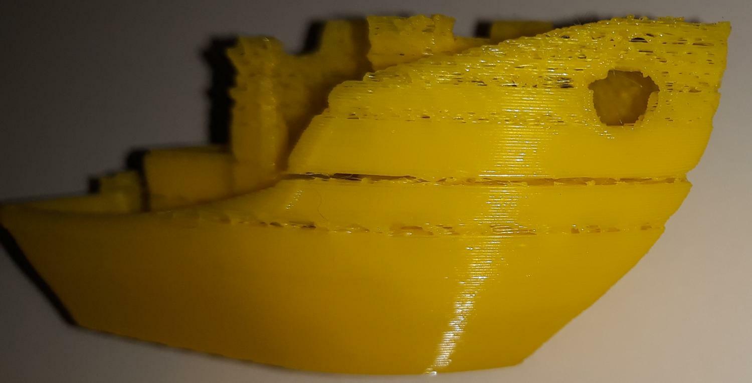 Salve a tutti, ho una LONGER LK4 a cui ho appena cambiato la scheda madre. Ho montato la sua originale comprata dallo store ufficiale (in realtà è quella di una Alfawise U30, ma le due stampanti sono perfettamente identiche) perché quella vecchia aveva il driver dell'asse y bruciato ed essendo saldato non potevo cambiarlo singolarmente. Come previsto non mi riporta più il problema di prima, ma ne è sorto uno nuovo: alla prima stampa (la classica barchetta), superata una certa altezza inizia a non estrudere più come dovrebbe, in particolare manca proprio del materiale (vi allego un'immagine) e ne deposita sempre di meno fino a che non attacca più e inizia a depositare materiale nel vuoto. Ho provato a cercare online ma tutti dicono di fare tutte le calibrazioni che si fanno all'inizio (flow, Estep, ecc), ma nel mio caso non sono quelle, altrimenti non avrebbe stampato correttamente ad iniziare dal primo layer. Solo un video su YouTube riportava un problema identico al mio, e consigliava di alzare la temperatura di stampa poiché più l'hot end si alza dal piatto, meno risente del suo calore. Ho quindi stampato a 205 °C invece dei soliti 195 (con cui mi ha fatto delle stampe a dir poco perfette in passato) e il risultato non è cambiato. Altri hanno dato la colpa al GCode, ma mi sembra strano dato che con Cura 4.8.0 ci ho sempre stampato e non mi ha mai dato problemi. Il file di stampa poi è lo stesso che ho sempre utilizzato e ho sempre ottenuto delle barchette perfette. Sinceramente non so proprio cosa pensare, sembra un problema sconosciuto a chiunque quello che mi è capitato, e quei pochi che l'hanno riscontrato hanno risolto con cose che io ho già provato. Grazie a chiunque dell'aiuto. -