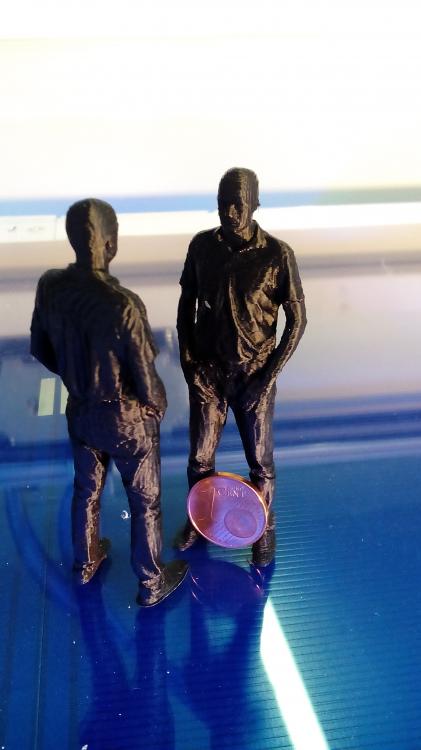 Buongiorno a tutti Ho il piacere di presentare in anteprima la nostra nuova stampante che si andrà ad aggiungere alla nostra gamma. Le dimensioni massime di costruzione sono Larghezza 500mm X Profondità 415mm X Altezza 420mm Monta doppio estrusore con ugelli da 0,4mm intercambiabile e raffreddamento forzato degli estrusori. Per garantire un ottimo sottosquadra e ottimi ponteggi è stato inserito nel gruppo estrusore un raffreddamento forzato a doppia ventola ad alta pressione tangente al piano. Dettaglio di stampa di alcuni risultati ottenuti: Il miniMe tempo di realizzazione 1h:40min layer 0,1 4 perimetro 0% infill temperatura 165°C velocità di stampa 50mm/sec PLA nero Scannerizzazione eseguita da EUMAKER, il Corpo tempo di realizzazione 12h:20min layer 0,1 spiralized 1perimetro (0% infill) temperatura 190°C velocità di stampa 70mm/sec PLA rosa treedfilament Saluti Marco Capolino
