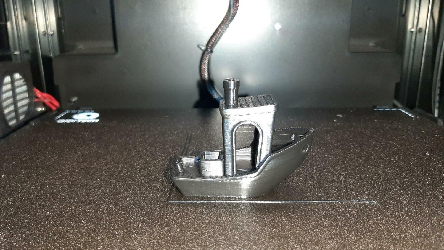 17. ho resistito quasi 8ore, il mio record personale! a parte tirarla fuori dallo scatolone, poi in 1/4 h parte la prima stampa; ovviamente la benchy; non sono un feticista delle benchy, ma in effetti fa impressione vedere a che velocità stampa e non credo di averne mai stampata una così prima impressione, chi ha disegnato il portafilamenti è un sadico, non mi verrebbe in mente un modo più scomodo😁 ora faccio ancora una stampa di prova poi ne preparo una io