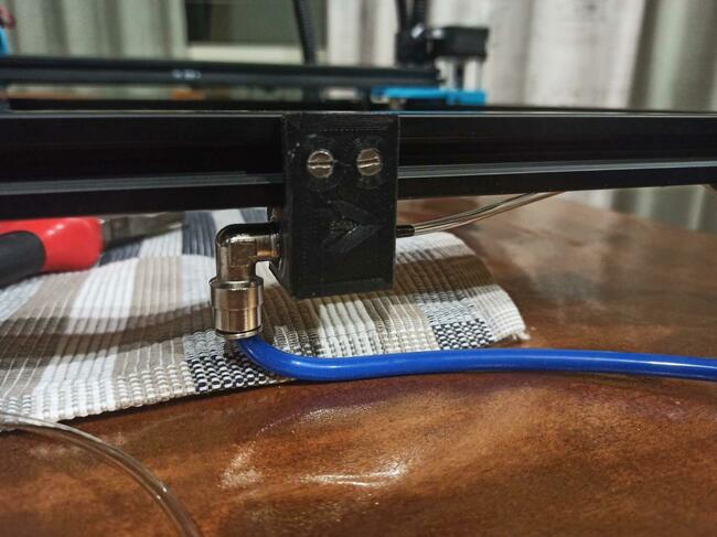 Rieccomi qui, sono stato impegnato con la progettazione dei vari upgrade dell' incisore Nell' ordine(secondo la priorità che mi avete dato in tanti e che effettivamente è corretta!) Air Assist (fatto!) Endstop(in progettazione, aspetto la pinza per i connettori JST) Griglia si taglio(in progettazione Aggiunta pulsante di spegnimento, è odioso che devo staccare la presa o il jack! Box aspirato Attualmente l' air assist lavora col compressore ma sto valutando l' ipotesi di un mini compressore o di una pompa acquario come consigliato da altri, io per una maggiore possibilità di impiego vado verso il compressorino, 60 euro e mi tolgo la paura! Vorrei, con molta umiltà, mostrare il mio air assist,manca ancora un pezzo...ma funziona tutto, ed i relativi risultati più evidenti Staffe canula in ottone da 2mm esterni con vite di blocco superiore Staffe montate Blocco di ingresso tubo rilsan da 6 uscita tubo da 2,5. Per aumentare il grip del tubo da 2,5 ho messo una guaina termostringente.I pezzi sono incollati con bicomponente Inutile dire quale è quella con l' air assist, da notare che nella prima la S e la I sono chiare perchè ho aperto l' aria Disegno a 2000/50%, scritte 1400/80% Ringrazio ancora @eaman e @Killrob per i consigli e la pazienza, io sonp molto soddisfatto dei risultati Mi scuso con i moderatori per l' elevato contenuto di immagini, se ritenete qualcuna inutile cancellatela, ma non volevo approfittarne. Se a qualcuno piace questo lavoro lo condivido con piacere ed infine secondo voi...quale è il pezzo mancante??? Ciao a tutti!!! -