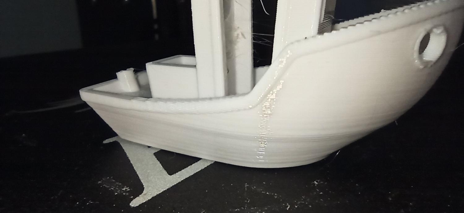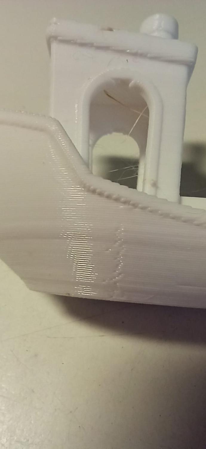 Salve, questa discussione è il seguito di una che avevo aperto in OT, ma dato che a questo punto non la reputo più tale ho deciso di spostarla qui. Ho da poco intrapreso la strada del PETG, principalmente perchè avevo la necessità di poter carteggiare e lucidare le superfici senza troppo problemi di surriscaldamento. Uso una Ender 3 Pro senza nessuna modifica, slicer cura 4.11 Di seguito le impostazioni: Piatto a 80 gradi con lacca, estrusore 235, ventola spenta, retrazione attiva, velocità 40 mm,spessore layer 0,25 anche il primo,Filamento PETG Amazon Basic Bianco. Innanzitutto ho risolto il problema del distacco tra layer, probabilmente dovuto alla ventola accesa al 100%. Di seguito le mie impressioni legate ad i vari problemi che ho riscontrato in modo da poter essere consigliato e capire se ho saputo interpretare causa/effetto. 1 - Prima cosa che mi balza gli occhi è che ad un certo livello la barchetta comincia ad "imbarcarsi" sul fondo diventando "a dondolo"!!! Credo che con tutta la buona volontà e aderenza possibile al piatto una massa che si raffredda da sola tutta in una volta TIRA. Secondo voi se ci sparo sopra la ventola al 30% in modo da far raffreddare gradualmente la massa potrebbe giovare? 2 - alcuni particolari finali(tipo la parte superiore del portello o dell' oblo) sono mananti o raggrinzite. Forse qualche grado in meno o quel 30% di ventola risolverebbe? 3 - Lo scafo non è omogeneo nel profilo. Dovrei imputarlo ad un problema meccanico=Potrei risolvere con uno stabilizzatore asse Z? Il resto degli assi è ben fisso ed anche l' estrusore. 4 - Alcune parti sono venute sfaldate(vedi ad esempio interno dello scafo a poppa), a cosa è dovuto? 5 - In una parte dello scafo c'e' una sorta di cucitura. A cosa è legata e come posso risolvere? 6 - Mentre stampava delle piccole palline di materiale si attaccavano all' ugello per poi trovarsi, bruciate, attaccate al modello 7 - il fondo non mi piace affatto.. è poco liscio, come posso ovviare?Ho lo stesso problema anche con il PLA. 8 - Nonostante la retrazione ci sono quelle maledette ragnatele. Posso imputarle sempre a temperatura elevata o ventola totalmente spenta? In definitiva non credo di essere lontano dalla perfezione, ovviamente limitato a questa macchina. Alla fine dei conti le misure sono corrette quasi tutte, qualche piccolo errore di 1 decimo l'ho trovato solo nelle piccole misure e credo sia imputabile più al diametro dell' ugello. La linearità su oggetti nell' ordine dei 4 cm è passabile ma, se posso avere di più perchè no? 😉 Grazie a tutti e buona giornata -