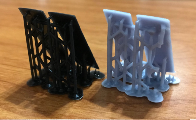 A parità di file e parametri di esposizione, con la resina nera sono stati stampati tutti i particolari.