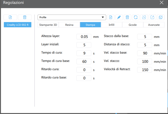Allego le foto del file di stampa, dei parametri di stampa e dei particolari stampati.