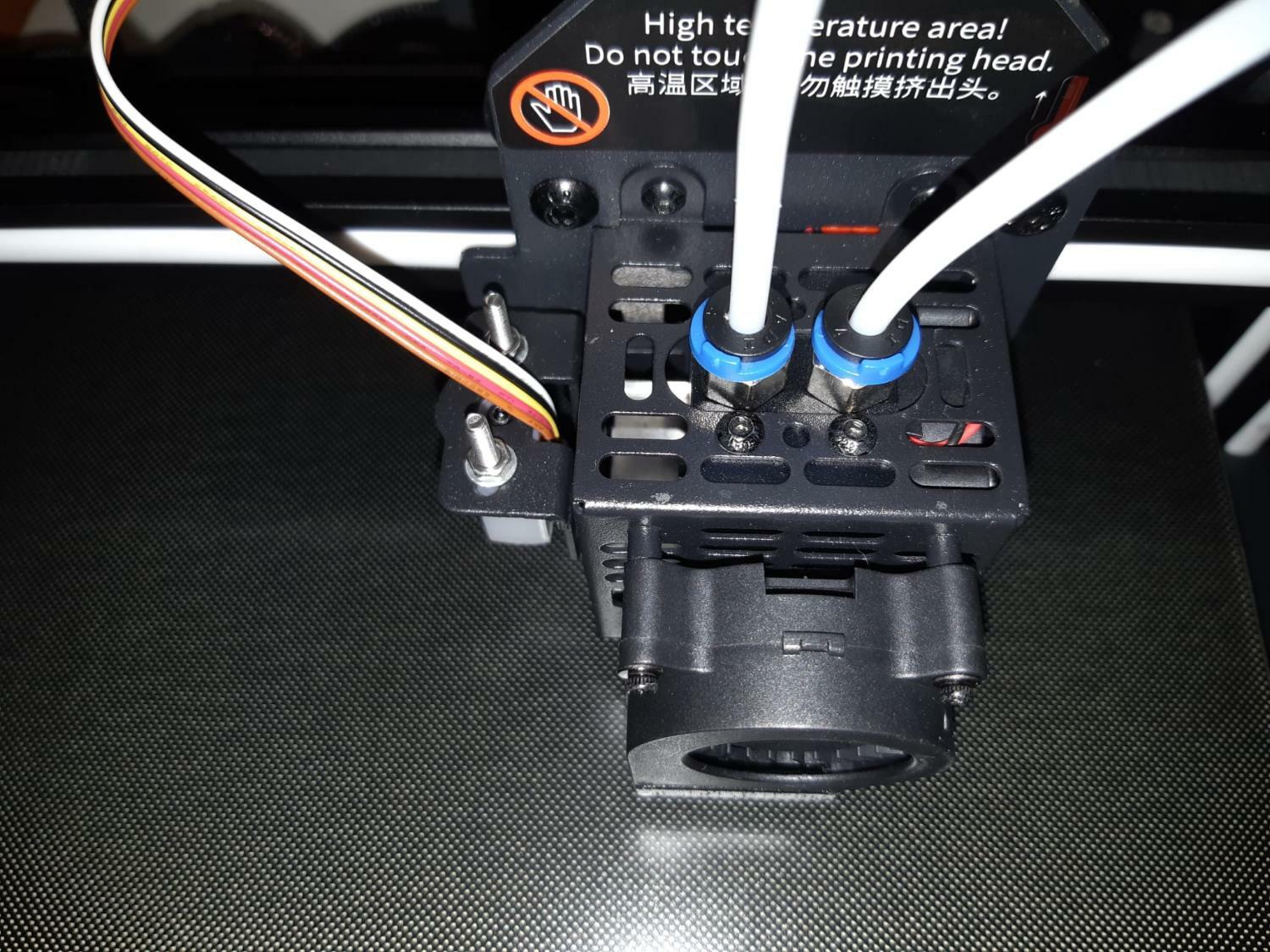 stavo facendo delle prove e m'è caduto l'occhio dentro il supporto del hot end; come vedete c'è una sola ventola di raffreddamento del corpo, quella a dx.