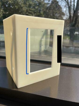 Ritiro volumetrico e lineare (resina)namaSte ha risposto a namaSte nella discussione Problemi generici o di qualità di stampa Purtroppo la mia stampante può sollevare il piatto solo ad intervalli di 50mm, 30 mm e 10mm. Ad ogni modo, nel frattempo ho cambiato resina, ho preso una ELEGOO white, ma il problema sembra ripresentarsi uguale, quindi escluderei definitivamente che sia dovuto alla resina. Inizialmente ho notato che il pezzo - che doveva essere alto 132mm - è alto 130,1mm quindi siamo a circa 1,5% di errore. Poi però ho notato due cose: 1) L'errore non è distribuito su tutta la lunghezza, ma su un tratto minore (indicato in blu nella foto), in corrispondenza di una finestrella nella quale devo inserire uno schermino. Dovrebbe essere 88,1mm invece è 86mm (quindi siamo sopra al 2%). Tenete presente che la direzione di stampa è parallela alla linea blu che vedete. 2) Ho notato che ci sono delle righe orizzontali (e quindi perpendicolari rispetto alla direzione di stampa) che però ho parzialmente eliminato con la carteggiatura (quindi dalla foto non si vedono benissimo). Queste righe sono però distribuite su tutta la lunghezza (quindi anche oltre la finestrella) quindi escludo che i due problemi siano collegati, ma mai dire mai. Non mi sembra di vedere un pattern periodico, mi sembrano distanti 2-3cm le une dalle altre, ma magari alla prossima stampa ci faccio più caso. Mi sapreste aiutare?