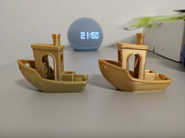 Sono passato a Klipper sulla mia Anycubic Mega S (carrello MK4, estrusore Bowden Microswiss, stepper 2208). Dopo un inizio entusiasmante sono iniziati i primi problemi: - Input shaping: ho fatto la calibrazione manuale ma i risultati non sono perfetti, sto attendendo che mi arrivi il sensore ADXL345 per fare delle calibrazioni più precise (la spedizione è in ritardo 😞 ). Sull'asse Y ho il letto di stampa che inizia a saltare gli step quando supero le accelerazioni di 4000mm/s2, se dovessi aumentare la Vref dello stepper avrei dei miglioramenti? Sarebbe meglio alleggerire mettendo un piatto PEI? - Pressure Advance: ho stampato il test di calibrazione (PLA+) ma dove ci sono le cuciture tra gli strati mi manca il materiale, penso dovuto alla retrazione, allora ho fatto un test senza retrazione ed è venuto ok ma con stringing nella diagonale della cuciture. Il valore di PA che ho trovato per la mia stampante è 0,56s. Ora sto rifacendo la calibrazione della retrazione e sembrerebbe che sono molto più piccole: sono passato da 4mm a 1,3mm. Lascio sotto alcune foto della Benchy appena conclusa con velocità di 100mm/s, accelerazione 4000mm/s2, 2 pareti, strato inferiore e superiore con 3 strati e 10% di infill in 38 minuti circa. https://photos.app.goo.gl/o1Jf7H7cCb8pkhGq9 vecchia benchy a sx e nuova benchy a dx La vecchi benchy era stata fatta con Marlin (con linear advance) a velocità di 60mm/s e accelerazioni molto più basse (1h circa di stampa). -