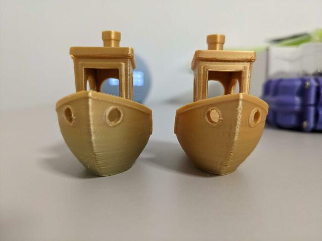 Ieri ho fatto delle prove con il jerk e le accelerazioni per cercare di trovare delle impostazioni migliori per la qualità di stampa: Sopra accelerazione a 2000mm/s2 e sotto 1000mm/s2, i numeri sono il jerk impostato. Abbassando le accelerazioni si riduce il ghosting (si riducono le vibrazioni indotte) e nello stesso tempo si può alzare il jerk per migliorare le stampe? Ha senso questa cosa?