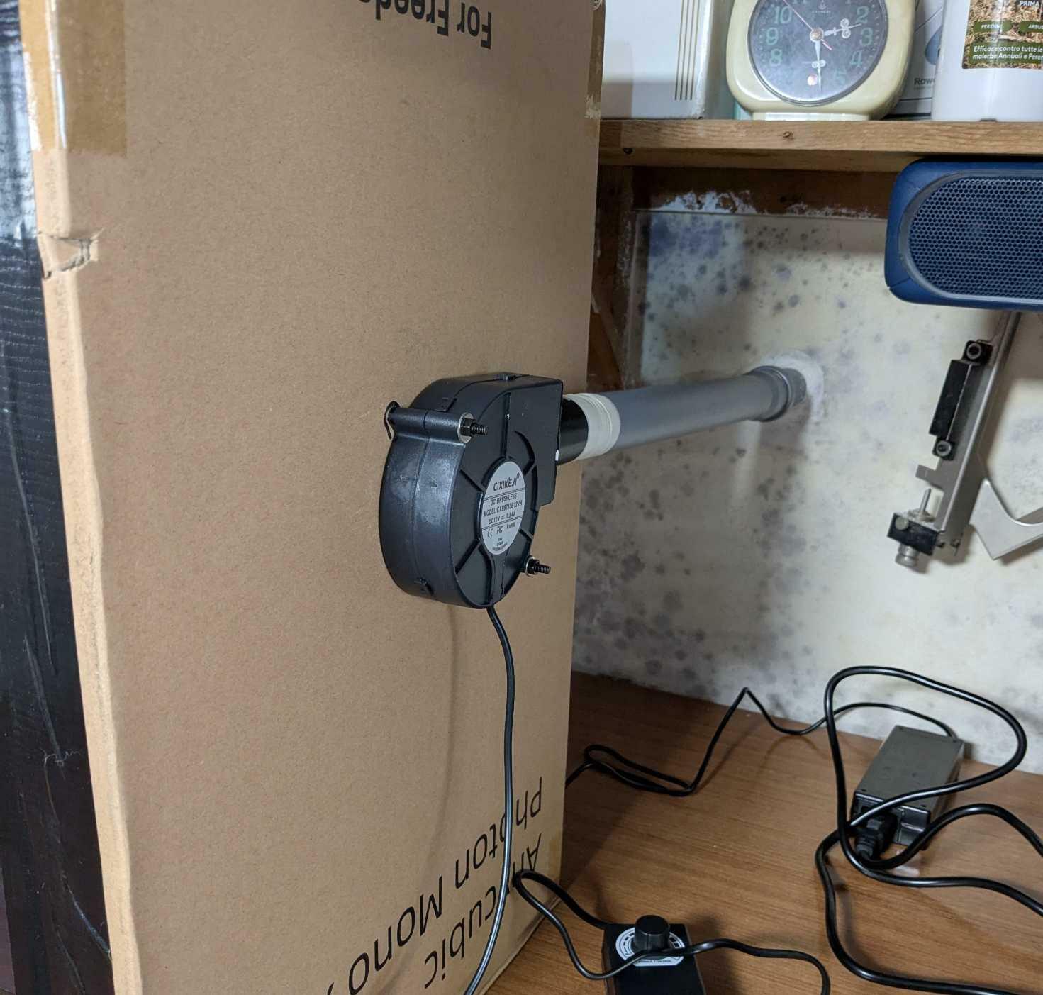 Mi sono scordato di precisare che la ventolina poi soffierebbe in un tubo che butta fuori dalla casa. È un modo per tenere pressione negativa nella camera di stampa e non far uscire l odore di resina. Se riesco a fare col solo nastro carta magari evito la ventola -