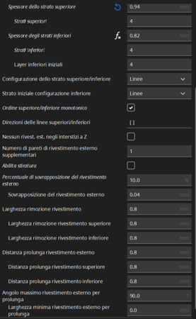 Ciao, lo avevo fatto tempo fa' e in effetti per compensare gli eccessi di materiale e le inesattezze dimensionali dello spessore sulle pareti avevo diminuito il flusso sulle pareti (esterna e interna) posso provare a fare una nuova prova per vedere il comportamento.- 36 risposte