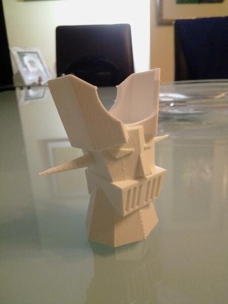 Consigli di stampa no di sicuro, sono uno degli ultimi arrivati e dei meno esperti. Però sono della tua generazione e posso segnalarti qualche errore nel disegno del modello, in particolare la "bocca" non dovrebbe essere a "V" (ovvero più sporgente nel mezzo) ma piatta. Inoltre la parte centrale, il "viso", mi pare troppo stretto rispetto al resto. Io non sarei assolutamente in grado di fare di meglio e faccio il tifo per te. Se vuoi farti una risata l'unico mazinger che io abbia mai realizzato (senza stampante 3d) è questo: buona fortuna, seguirò i tuoi progressi! 🙂 -