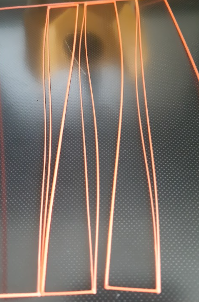 aspettando commenti vado avanti con gli esperimenti. calibrato piatto stampo test bed leveling ma pur sembrando perfetto ad una prima occhiata... sollevandolo dal piatto noto che le linee centrali non sono correttamente fuse avendo appena ricalibrato il piatto provo a cambiare temperatura, alzo un po' quella del nozzle e abbasso leggermente quella del piano (da 200 a 205 e da 80 a 70, come da precedenti indicazioni) A breve vi aggiorno, sperando di non esagerare con i post -