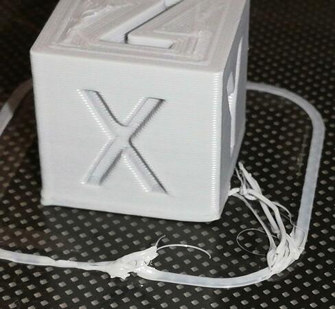 Ciao e buona Domanica questa mattina mi sono messo di buona lena, ho provato a stampare un cubo di test, dimensioni fisiche sembrano ok i 3 lati danno valori intorno a 20,1 mm.