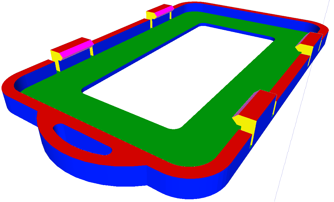 Salve a tutti, vorrei realizzare un semplice portachiavi in cui inserire il digipass della mia banca. Il digipass e' di fatto una tavoletta di plastica delle dimensioni di 75x45x3 mm con una bottoniera e un display nella faccia superiore. Il digipass deve poter essere usato senza dover essere estratto ogni volta, ma deve potersi estrarre all'occorrenza di tanto in tanto senza troppe difficolta' Ho preparato due possibili modelli consketch up, vedi screenshots allegati, nei quali il digipass viene incastrato con 4 dentini di plastica. Essendo assolutamente nuovo alla stampa 3D, non ho molta conoscenza circa i materiali normalmente usati (ABS e PLA), e in particolare non conosco i loro livelli di flessibilit' e resistenza. Vorrei quini domandare: 1. Quale spessore minimo devo dare alla base e alle pareti del portachiavi? 2. Come sagomare i dentini? quanto devono rientrare rispetto al bordo del digipass? 3. Quale dei due modelli che ho disegnato vi sembra piu' adatto alla mia applicazione? Quali modifiche suggerireste? Grazie mille per l'aiuto, Giuseppe