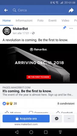 Nuova stampante 3D Makerbot - Presentazione 11 dicembre 2018