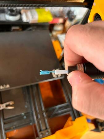 Salve a tutti, come mostrato in foto continua a crearsi questo blocco di materiale all'interno dell' end. Sapreste darmi consigli sul come evitare questo accumulo. L'estrusore del filamento l'ho già cambiato ma il problema persiste.