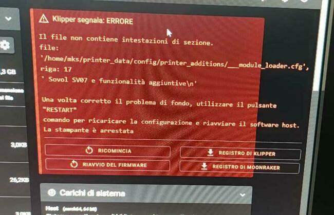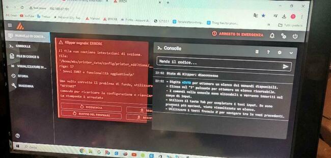 Pad sovol 32gapprendista ha risposto a apprendista nella discussione Software di slicing, firmware e GCode Klipper segnala: ERRORE Prima era tornato rosso, ho riavviato ed ora blu a oltranza La stampante non è pronta Il software host klippy sta tentando di connettersi. Per favore riprovare tra qualche istante. ma in rosso
