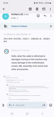 Ciao,ho risolto vari problemi per ottenerne sempre un altro dopo.adesso la stampante non dà segni di vita se non il led dell'alimentatore,l assistenza di artillery suggerisce che sia stato il danno causato dal cavo abl,dicendo che accendedola con questo problema ha bruciato i cavi e danneggiato la scheda madre e lo schermo.