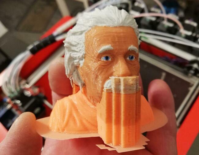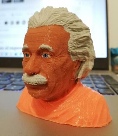 Colorazione delle mesh in Prusa slicer 2.4.0immaginaecrea ha pubblicato una discussione in Software di slicing, firmware e GCode Che dire....... Prusa ha dato il "colpo di coda"...... mantenendo peraltro il tutto completamente free..... finalmente abbiamo un sw per colorare le mesh a piacimento...... Si insomma..... il buon Josef è riuscito nell'intento e devo ammettere che ha fatto un eccellente lavoro. Il fatto di "proiettare all'interno delle mesh le varie superfici verticali colorate è un'idea geniale che permette ai sistemi multicolore di lavorare al meglio...... Il busto di Einstein non so esattamente qual'è perchè è una vita che l'ho scaricato ma è uno dei tanti scaricabili da Thingiverse La stampa è a 0.2 mm layer e le foto in alta risoluzione evidenziano "difetti" (tra cui i layer) che a occhio si fa decisamente fatica a notare..... e non l'ho neppure ripulita come si dovrebbe..... insomma la stampa è più bella dal vivo che in foto..... Anche i capelli sono grigi e non bianchi..... ma le fotocamere dei cellulari sono troppo luminose per poter notare la differenza col bianco degli occhi Concludendo....... bella Josef......