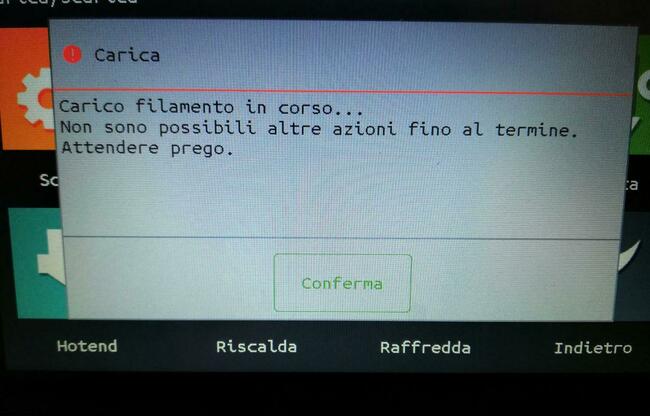 Marlin - caricamento/scaricamento filo in bowdenimmaginaecrea ha risposto a immaginaecrea nella discussione Software di slicing, firmware e GCode Ti ringrazio molto.... si è quella.... ho abilitato "ADVANCED_PAUSE_FEATURE" e "NOZZLE_PARK_FEATURE" che è richiesto ed in effetti funziona...... ma ci sono 2 cose che non ho capito...... la prima è come disabilitare il riscaldamento del nozzle che viene richiesto per svolgere load/unload...... che non so proprio come disabilitarlo La seconda è che avendo 5 estrusori mi fa scaricare e caricare il primo estrusore (T0).... ma quando clicco nel tasto per selezionare il successivo estrusore mi viene fuori questo errore e non so come fargli "terminare" la sessione. Pensavo potesse dipendere dal sensore di runout per il filo che peraltro non ho ma la funzione è disabilitata in configuration Grazie ancora per l'aiuto.... 😁