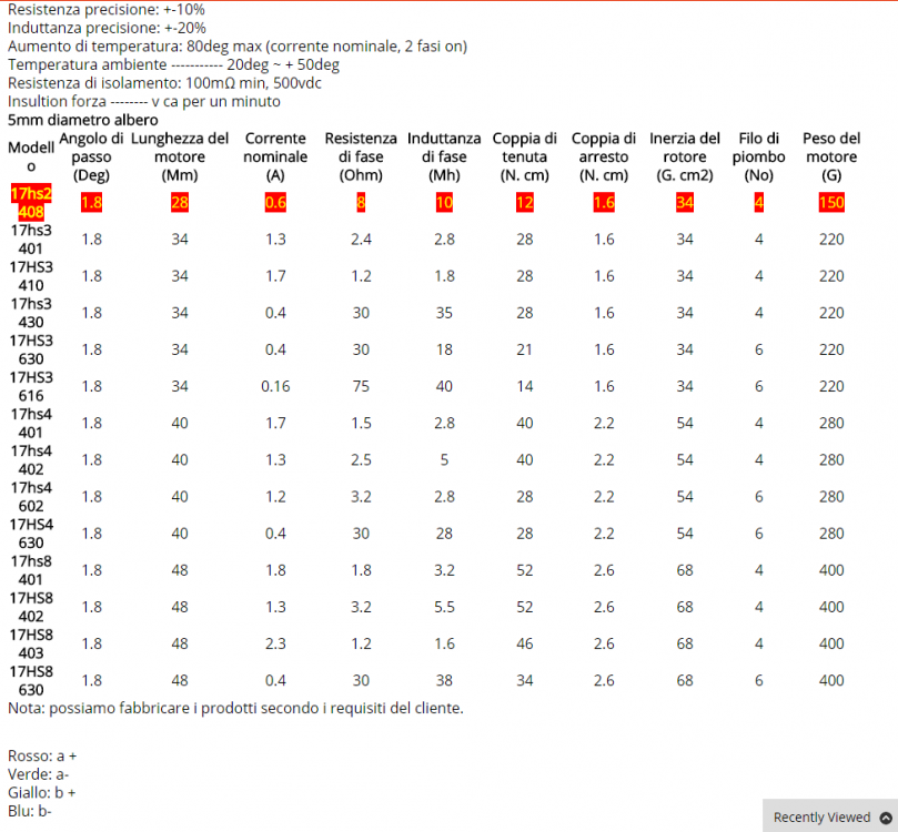 altro problema..il motore è incandescente... come hai collegato il motore? fa rumore quando gira? il mio nema è questo nella foto, evidenziato in rosso questo il pinout Rosso: a + Verde: a- Giallo: b + Blu: b- come li colleghi alla zumscan?
