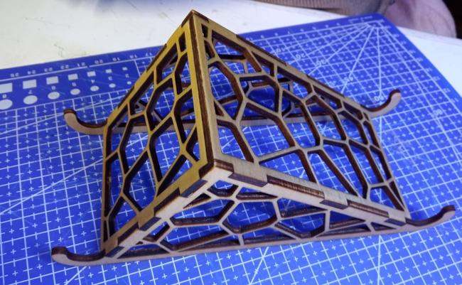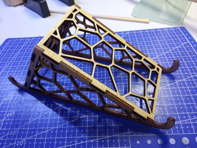 - https://www.freepatternsarea.com/designs/laser-cut-cell-phone-stand-holder-design/ Sempre piaciuti i pattern Varonoi, se volete fare invidia a qualcuno che usa il traforo a mano questo e' un buon candidato 😛 Tagliato su pioppo da 3mm, rifinito con olio paglierino, non limato.
