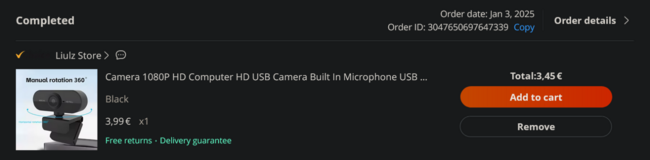 10. Io lo dico per altri che ci fossero in mezzo: Questa e' la CAM 1080p 60fps da 3.5e su aliexpress, che e' USB: https://www.aliexpress.com/item/1005006756095725.html , io ne ho comprate 3. Se lo volete vi carico anche l'adattatore stampabile per montarla che ho fatto. Cercate su quale negozio e' in offerta al momento.