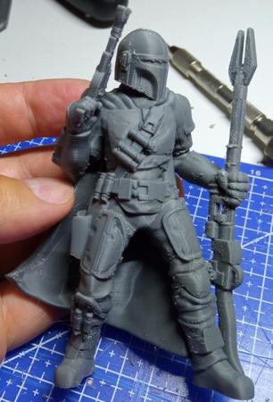 23. Stampato questa Town Guard da 6cm: Poi tanto per provare o slicerato un Mando con Cura dato che lo usano tutti cercando di ricopiare i settaggi che ho in S3D. Sbagliata la temperatura (troppo caldo), stringhe, blob di plastica da scatti di estrusione e ritrazione, velocita' eccessiva o troppi scatti. Mo provo a correggere e vediamo se miglioro un po'. Ma si puo' almeno modificare i supporti ad albero? Posizionarli, eliminare quelli che non servono... No perche' se l'unica opzione per customizzare i supporti e' spostare faticosamente dei cubi tramite un plug in esterno mi sa che di Cura posso continuare a farne a meno, oppure devo mettermi a disegnare i supporti in Meshmixer e poi slicerare tutto in cura. O ancora meglio lasciar perdere la FDM per queste cose e stampare / slicerare in CHITUBOX , IMHO questa roba e' anche piu' facile da metter giu' per la resina...