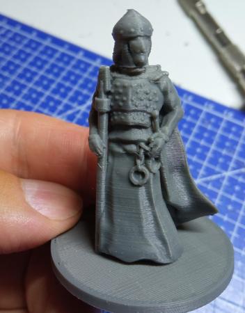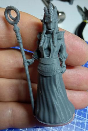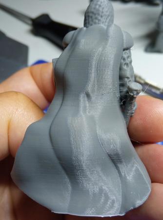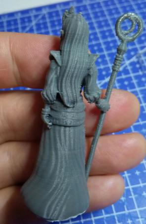 19. Confidando in Cura ho provato a slicerare e stampare Dokkalf Queen, alta 65mm. Abbassato ulteriormente la temperatura a 210 per cercare di limitare le string, ha fatto comunque un sacco di blob e piccoli accumuli pelosi. Non so se sono io che sono incapace con Cura, ora sto provando a farla con S3D. Il fatto e' che mi piacerebbe riuscire a usare Cura per i supporti ad albero per stampare robe complesse come questa Cyborg lich che e' un trionfo di supporti. Questo pero' non e' FDM friendly di certo, diciamo che e' per darsi un limite (almeno per me e la mia ender con bowden e nozzle da 0.4mm).