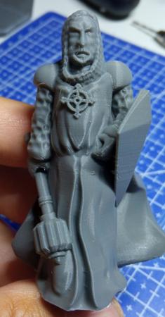 22. Finito qusto Brother Balphior, alto 6cm fatto in PLA+ a 0.1mm con Cura, mi sembra sia venuto un po' meglio del Mando. Gli ho abbassato la temperatura. messo tutte le velocita' a 30 (che magari e' pure tanto per l'outer wall) per cercare di tenere la pressione del filamento costante (che poi tanto c'e' la retraction, quindi non so quanto serve), niente Z Hop perche' non ho il doppio asse Y 😞 Mi sa che si potrebbe farlo andare ancora piu' piano e provare a fargli fare lo Z-hop, se voi che usate cura avete qualche consiglio... Come lo vedete? Anche rispetto ai primi che erano fatti con S3D: stesso filamento e stessa Ender 3 ovviamente.