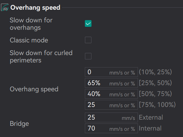 Vai nella scheda speed del processo di stampa Perche' quello della Bambu lo avranno preconfigurato, con l'eSUN se non c'e' un profilo dovrai regolartelo da te. Quello che dice il produttore nelle specifiche e' indicativo, cambia per ogni stampante - estrusore. -