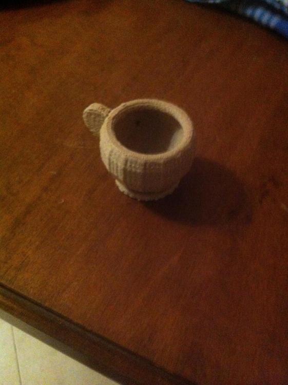 Il pla è arrivato e la prima stampa è venuta bene, a parte che si è spezzato il filo per colpa mia e quindi è rimasta incompleta. Oggi ho stampato una tazzina da caffè in effetto legno: sono molto soddisfatto, credo che ci siano margini di miglioramento ma il risultato è soddisfacente