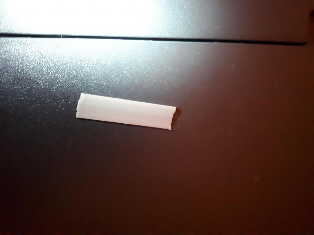 7. Ciao ragazzi è da circa una giornata che la mia geeetech prusa i3 ha iniziato a stampare oggetti in modo strano, il problema è solo sull'asse X. Ho controllato le cinghie e sono tese, la vref è a .93-.95 oltre a questo non saprei più che fare..mi era capitato in passato ma avevo risolto così.. In foto un pezzo che sarebbe dovuto esser dritto
