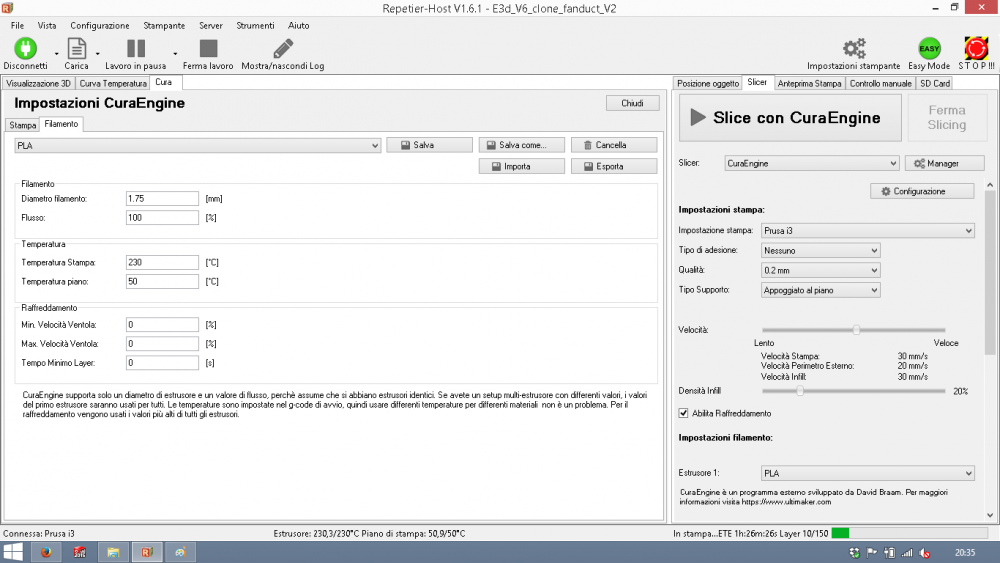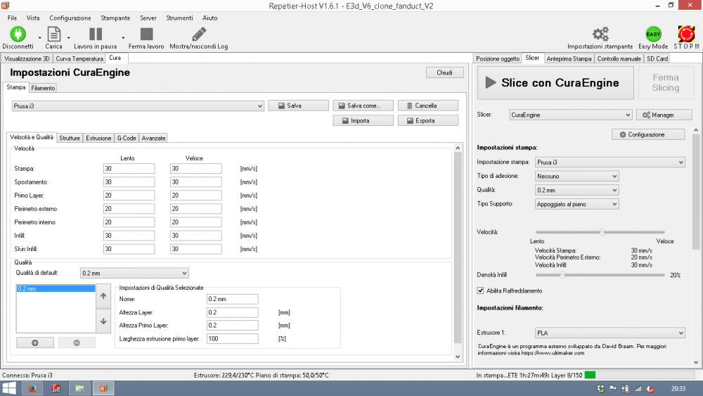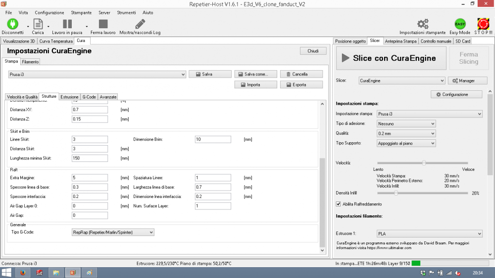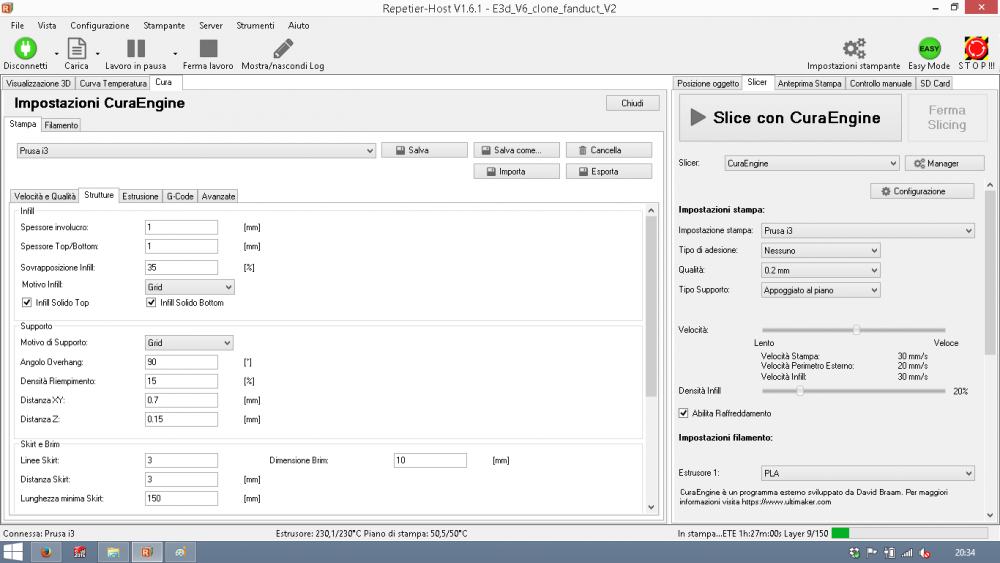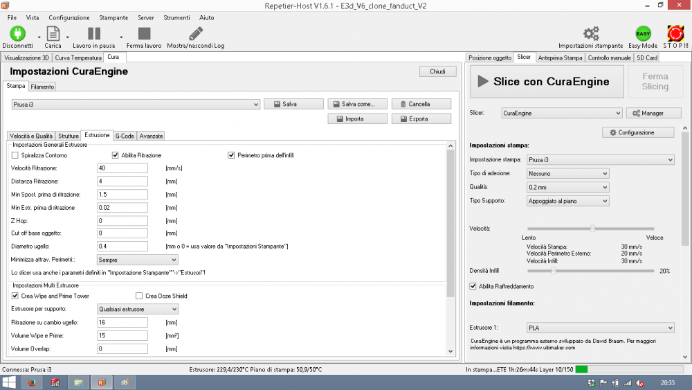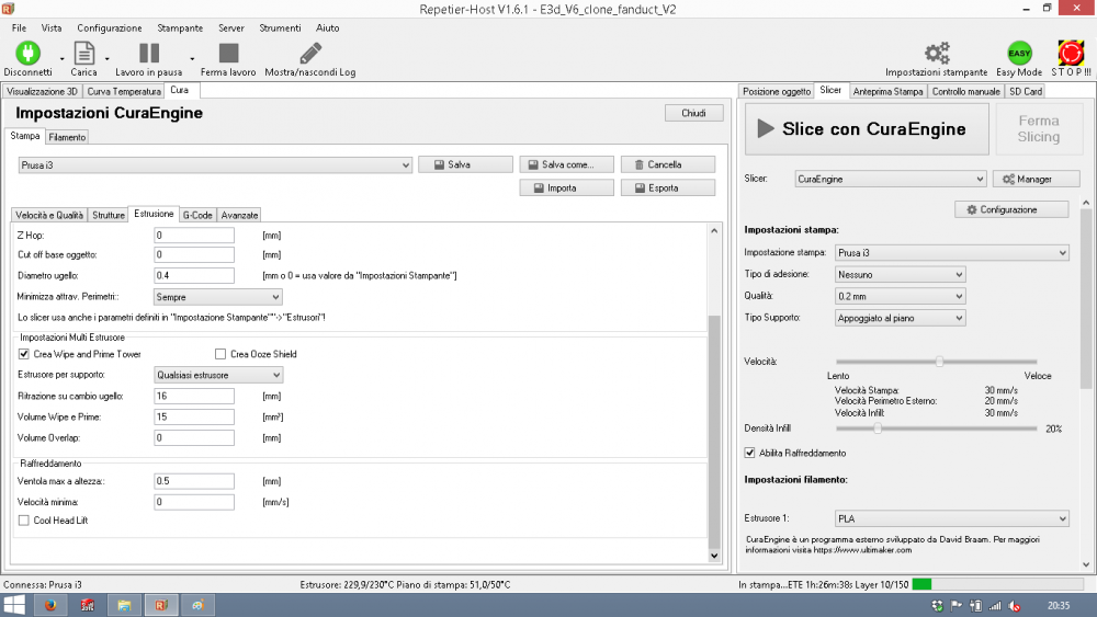 Buongiorno a tutti, vorrei un parere sull'impostazioni che ho inserito in Repetier, ho cominciato solo ora a migliorarla. Per ora stampa anche se non benissimo ma diciamo che va. Vorrei un pare sulla configurazione che ho fatto e se si può migliorare. Grazie -