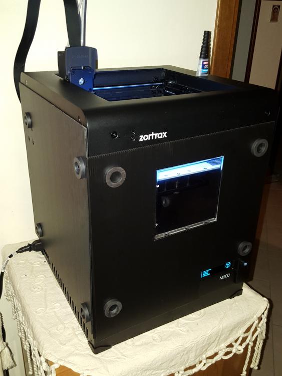 1. ciao a tutti, ho crato i pannelli della mia nuova zortrax M200. Tutto fatto da me quindi nulla di chè ma, speso pochissimo e spero protegga un po. Ho crato anche la una parte anteriore con una parte trasparente per poter visionare l'andamento della stampa. esteticamente un po bruttina forse, però metterò i pannelli solo per oggetti di grandi dimensioni. ciao