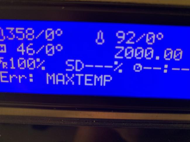Questo è l’errore che mi da adesso...praticamente mi rileva una temperatura altissima del secondo estrusore mentre in realtá questo è freddo -