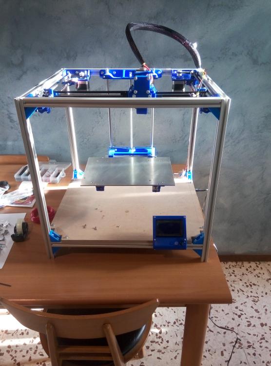 Ciao Alep , ho fatto qualche modifica , è tutto ben teso ben serrato e perfettamente in squadro ma nonostante tutto i cerchi continua a fare quel saltino , pensavo fosse problema di corrente quindi ho messo mano al VREF regolando tutti i motori identici a 0.45 ,ma niente nei cerchi mi salta A questo punto mi viene da pensare che sia il firmware faro' altre prove Intanto guarda l'evoluzione il porta bobina è ancora provissorio anche il motore dell'estrusore -