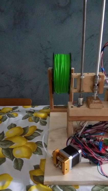 Ciao, chiedo aiuto,ho costruito una stampante cherry 3d ,per quanto riguarda la meccanica nessun intoppo , con l'elettronica un caos, uso arduino mega(clone) con ramps 1.4 con A4988,ho caricato il firmware , e sembrava tutto ok manualmente i comandi funzionavano anche se i motori(28byj-48 Steppermotor)erano molto lenti,tranne il nema 17 spingi filo,lancio una stampa tramite Repetier comincia a scaldare l'estrusore (ero troppo contento) si tira il filamento PLA da 1.7 e da questo momento in poi l'inferno il filamento sembra piantarsi all'interno del tubo in teflon e poi nell'estrusore , quando riesce a passare inizia con dei micro movimenti tipo se il pezzo da stampare era di 5 cm la stampante lo faceva da 5mm ho cambiato firmware ,ho provato a compilarlo io (non ne so nulla di compilazione e linguaggi) fatto sta che con il mio i motori si svegliano iniziano a girare abbastanza bene , allora clicco so home per l'asse z e patatrack l'asse z non si muove piu', e asse X e Z tornano lentissimi ,ve la mostro,ora è in legno per poi stamparmi tutti i pezzi ma credo che non avverrà mai